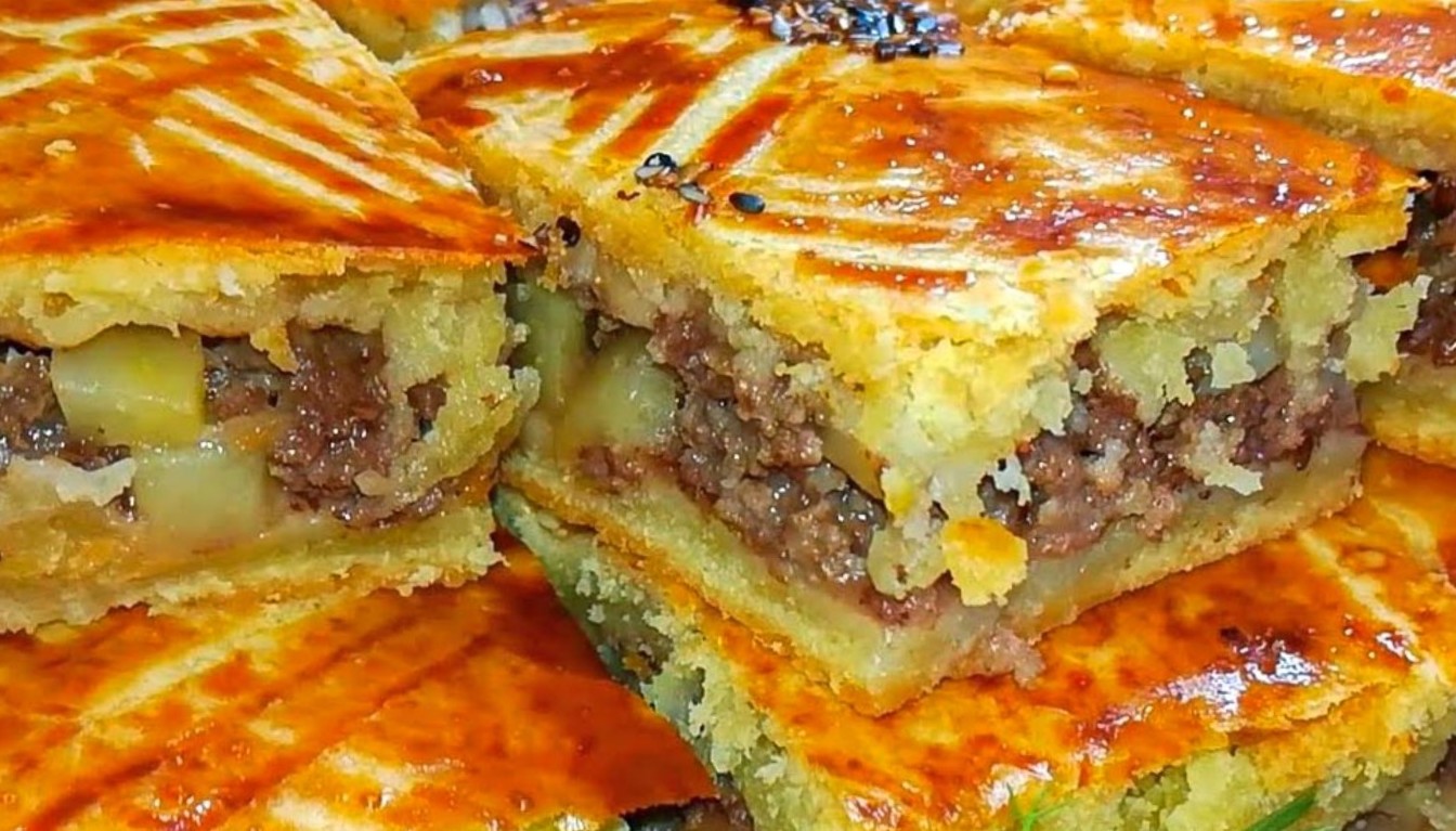 Пирог на кефире с фаршем и картошкой в духовке
