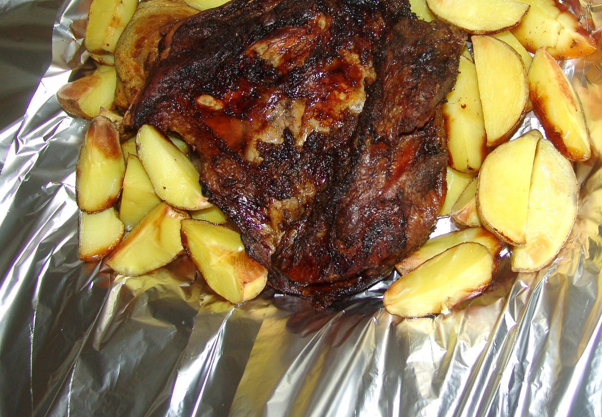 - Готовый продукт заверните в фольгу и уложите на кость в поддон.