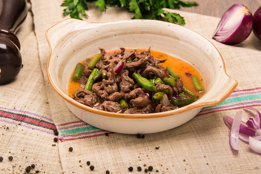 Говядина с фасолью под ореховым соусом