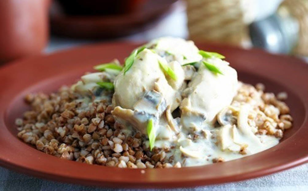 - Гречка с мясом в сметанном соусе